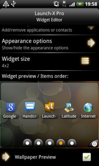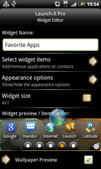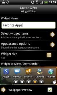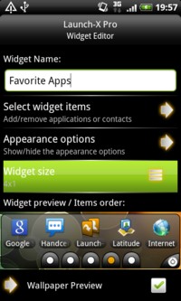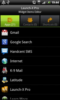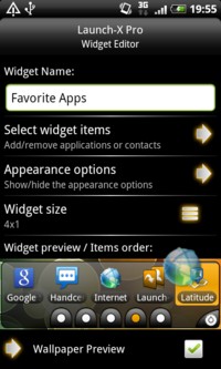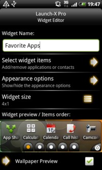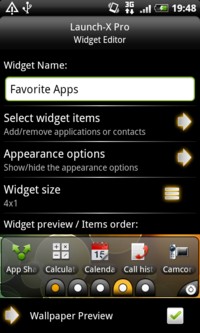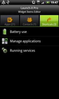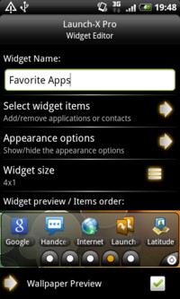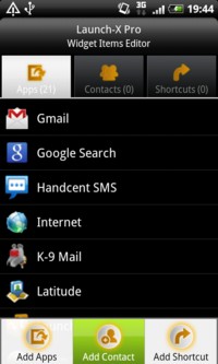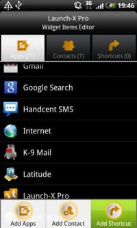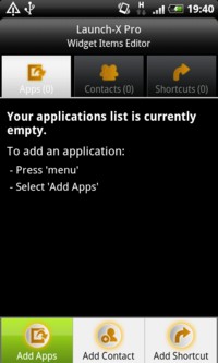 Let's see, step-by-step, how to create a Launch-X widget, add some items (applications, contacts and generic shortcuts) to it, customize the widget, and finally add it to the homescreen.