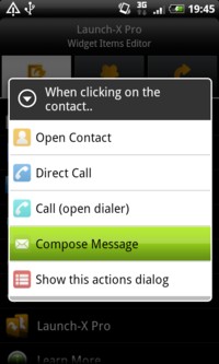 When you select a contact a dialog will popup letting you decide the action to take when later this item is clicked on the widget: