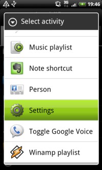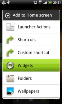 Let's add to this widget also a couple of 'Shortcuts'. Again, press 'menu' and select 'Add Shortcut'.