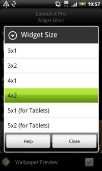 Note: the widget size selected here only applies to the Widget Preview. The real widget size will be determined when actually adding the widget to the homescreen.