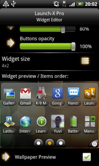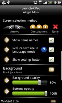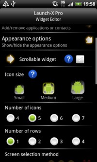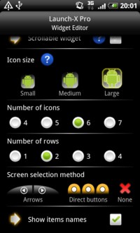 - Number of rows Here you can select how many rows to have in each Launch-X Widget screen.