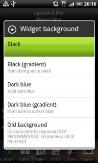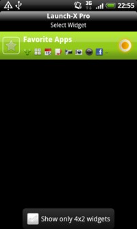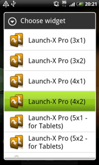 The created widgets in Launch-X will be shown on the next screen, where you can select the one to add to your homescreen.