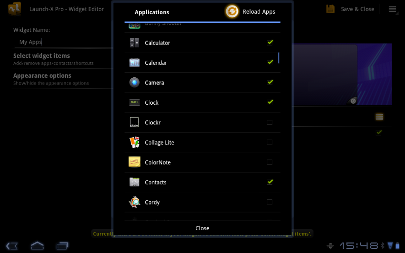 Now select the apps you want to add to the widget, and when done, press the 'back' button.