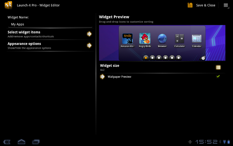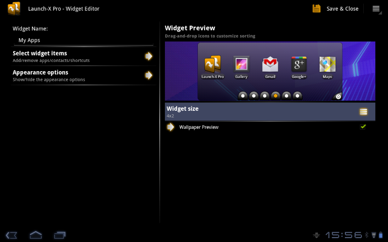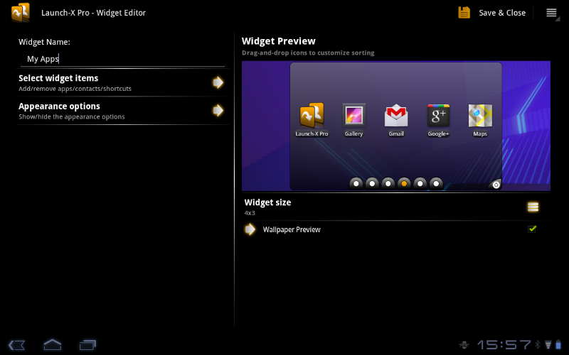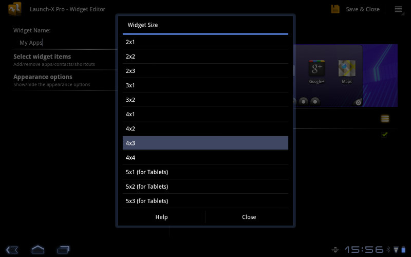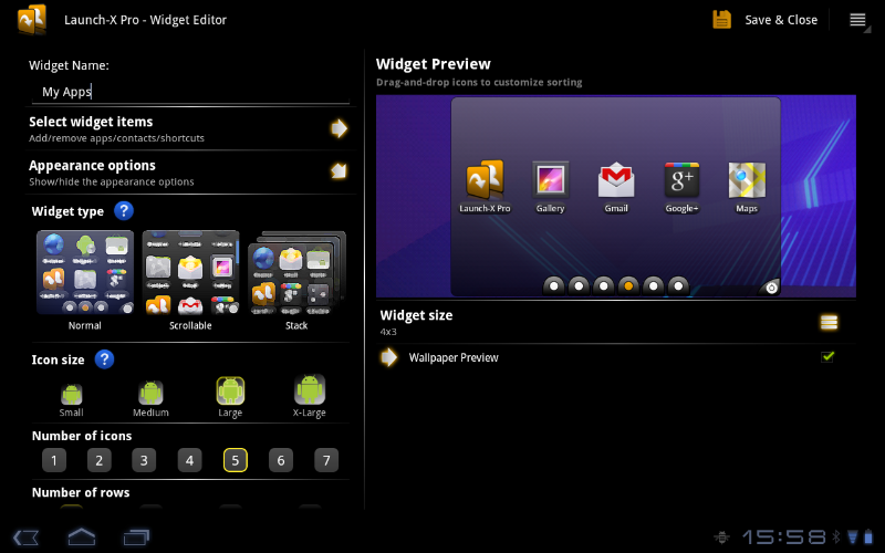 Note: the widget size selected here only applies to the Widget Preview. The real widget size will be determined when actually adding the widget to the homescreen.