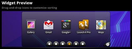 The created widgets in Launch-X will be shown on the next screen, where you can select the one to add to your homescreen.