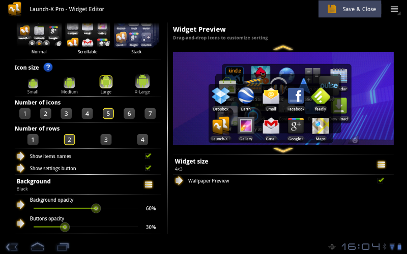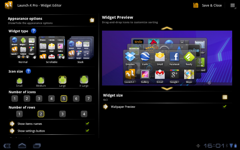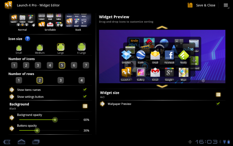 - Number of rows Here you can select how many rows to have in each Launch-X Widget screen.