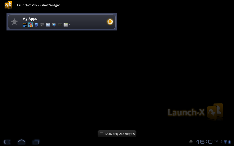 Let's finally add the widget to the homescreen! Press 'back' to quit the Launch-X application.